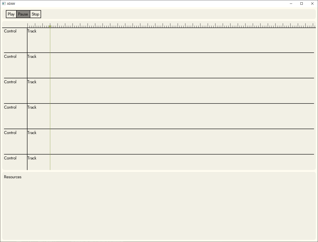 Got a basic UI layout for &adaw and a little scrubber that moves across a timeline. Next step is to actually get some samples that can be dragged around and mixing them